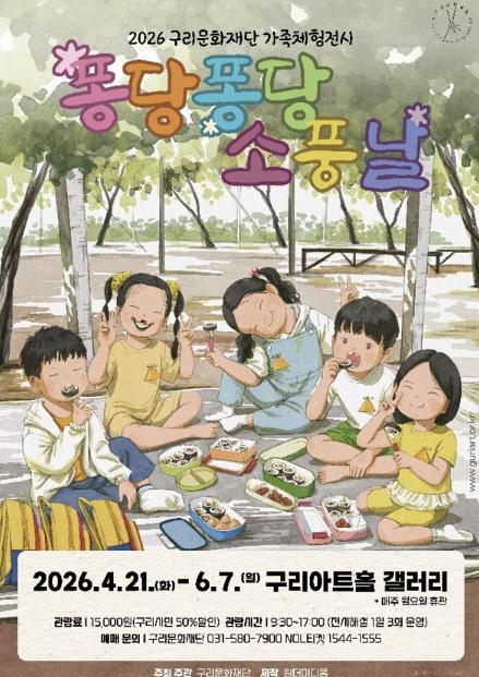 (재)구리문화재단은 4월 21일부터 6월 7일까지 구리아트홀 갤러리에서 가족 체험전시 '퐁당퐁당 소풍날'을 개최한다고 밝혔다.