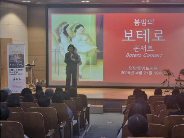 행사는 세계적인 거장 페르난도 보테로의 삶과 작품 세계를 인문학적 해설과 음악으로 풀어내 공직자와 시민들의 인문학적 소양 함양 및 예술적 감수성을 고취하고자 마련됐다.