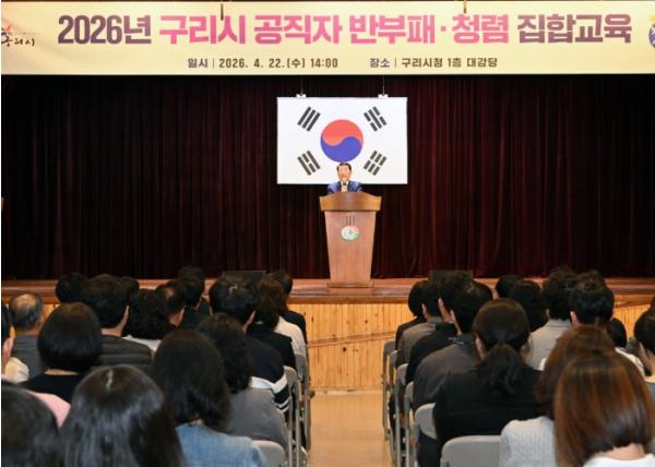 [한국뉴스타임=편집국] 구리시는 지난 4월 22일 구리시청 대강당에서 5급 이상 간부 공무원과 신규·승진 공무원 등 170여 명을 대상으로 ‘2026년 구리시 공직자 반부패·청렴 교육’을 실시했다고 밝혔다.
