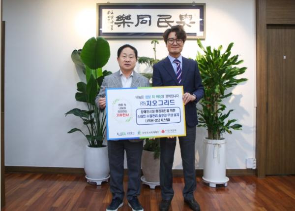 [한국뉴스타임=편집국] 남양주시는 23일 ㈜지오그리드가 취약계층 생활환경 개선을 위해 관내 장애인복지시설 신망애재활원에 1억 원 상당의 스마트 수질 관리 및 정수 시스템 ‘BLOS’를 지원했다고 밝혔다.