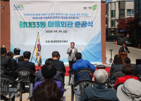 [한국뉴스타임=편집국] 남양주시는 24일 평내동 588-19번지 일원에서 평내33통 마을회관 재건축사업 준공식을 개최했다고 밝혔다.