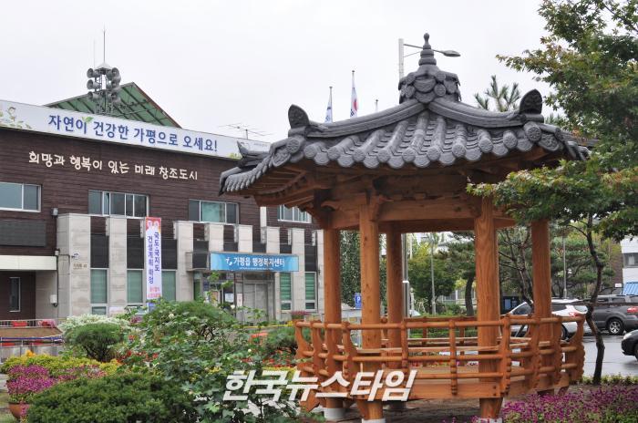[한국뉴스타임=명기자] 가평읍 거주하는 주민 송정회 옹(翁)이 가평읍행정복지센터 공원내에 건립하여 기증한 육각정자가 지난 6일 개소하여 주민들을 맞이하였다.