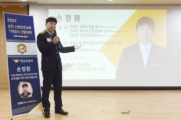 [한국뉴스타임=편집국] 경기도소방을 대표하는 소방안전교육 1등 스타강사 이른바 ‘1타강사’에 안산소방서 손정원 소방장이 최종 선발됐다.