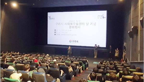 [한국뉴스타임=편집국] 구리시는 지난 22일 구리CGV 영화관에서 구리시 행정관서 및 사회복지시설에서 근무 중인 210여 명의 사회복무요원을 대상으로 '2022년 제7회 사회복무요원의 날 행사'를 개최했다.