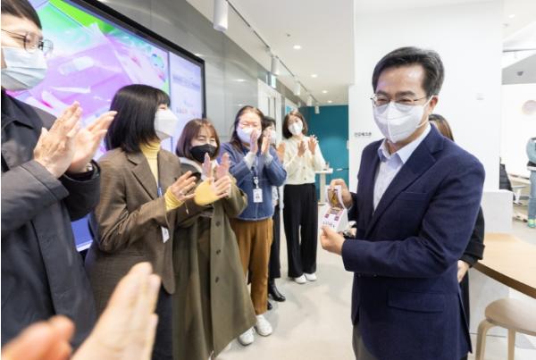 [한국뉴스타임=편집국] 김동연 경기도지사는 24일 ‘민원의 날’을 맞아 민원처리 업무를 맡고 있는 도청 열린민원실 직원과 조사담당관실 직원들을 찾아 격려했다.