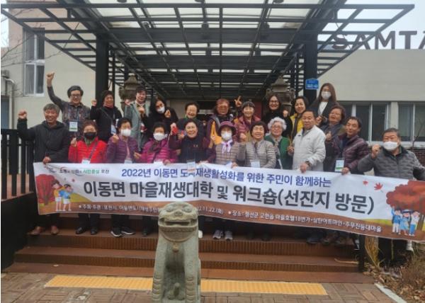 [한국뉴스타임=편집국] 포천시는 지난 22일 이동면 도시재생사업 활성화를 위해 마을재생대학을 통한 주민조직 공동체활동 및 주민역량강화를 위해 워크숍(선진지견학)을 다녀왔다.