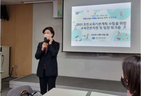 이번에 진행된 워크숍은 코로나19로 인해 힘들게 이어온 일상을 회복하는 시기에 맞추어 대면으로 운영됐으며, 미래교육의 중심,새로운 경기교육의 비전과 자율, 균형, 미래를 향해 새롭게 나아가는 포천교육 실현을 위한 리더로서의 마인드를 제고하고, 2023 포천교육 수립의 방향을 교육전문직원과 팀장 소통을 통해서 교육에 대한 성찰과 포천 미래교육에 대한 방향을 함께 고민하고자 마련됐다.