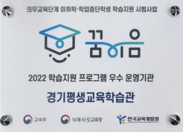 경기평생교육학습관(관장 조한일)은 지난 14일 2022년 의무교육단계 미취학·학업중단학생 학습지원 시범사업 ‘꿈이음’ 공모전에서 프로그램 우수사례 부문 우수상(한국교육개발원장상)을 받았다.