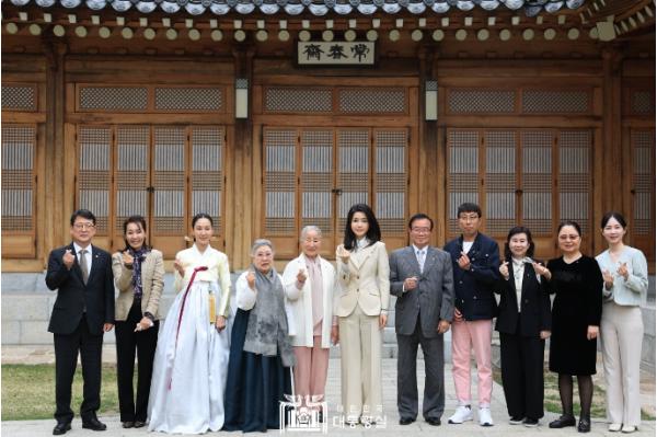 [한국뉴스타임=편집국] 김건희 여사는 4. 4일 국가무형문화재 전통공연·예술 분야 보유자, 이수자, 전수생 20명과 상춘재에서 오찬을 갖고 이들의 활동을 격려했다. 김 여사와 국가무형문화재 전승자들과의 만남은 지난달 전통공예 가계 전승자 오찬 간담회에 이어 이번이 두 번째이다.