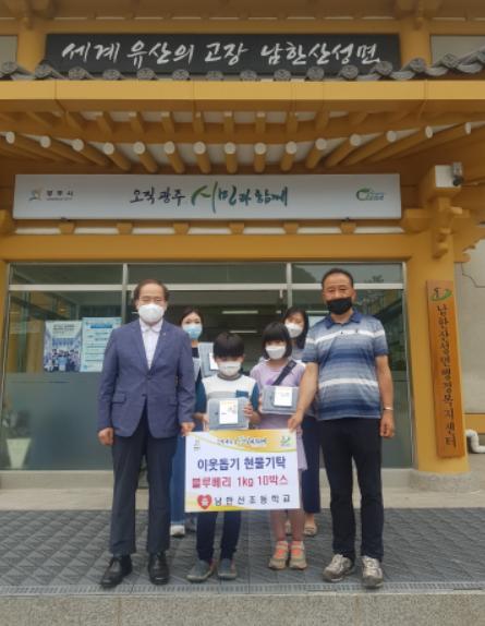 [KNT한국뉴스타임] 남한산초등학교는 지난 29일 광주시 남한산성면 행정복지센터를 방문, 관내 홀몸어르신들에게 전달해 달라며 학생들이 직접 쓴 손 편지와 함께 블루베리 10박스(1㎏·25만원 상당)를 지역사회보장협의체 후원품으로 기탁했다.