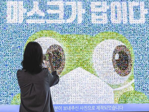수많은 사진이 한데 어우러져 하나의 이미지를 만들어내는 ‘사진 모자이크’ 방식으로, 수원시 공식 캐릭터 ‘수원이’가 마스크를 쓴 모습과 함께 ‘마스크가 답이다’라는 메시지를 담았다.