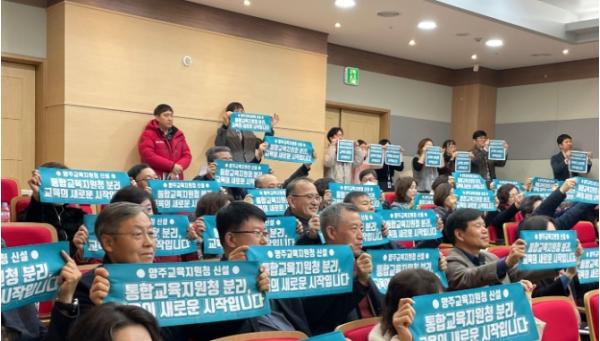 양주덕산초 김경이 교장을 비롯한 70여 명의 교장단은 결의문을 통해 “통합교육지원청 분리는 수요자 중심 교육지원과 지역 특성에 맞는 교육자치 구현을 위한 시대적 요구이자 교육의 시작”이라고 말했다.