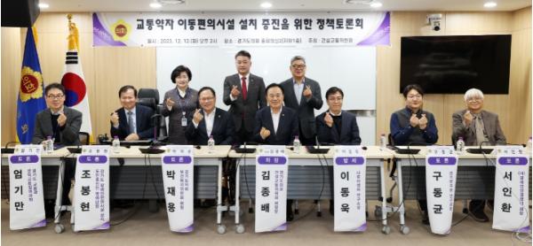건설교통위원회는 12일 오후 도의회 중회의실에서 열린 ‘교통약자 이동편의시설 설치 증진을 위한 정책토론회’에서 김종배(더불어민주당·시흥4) 위원장이 좌장을 맡은 가운데 김동희(더불어민주당·부천6) 의원을 비롯해 보건복지위원회 최종현(더불어민주당·수원7) 위원장이 참석했으며, 박재용(더불어민주당·비례) 의원 등이 토론자로 참여했다.