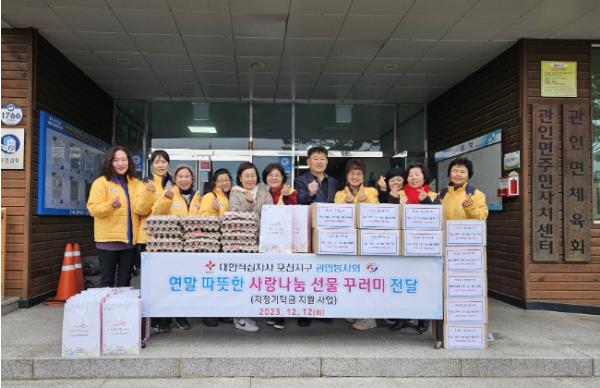 [한국뉴스타임=편집국] 관인면 행정복지센터는 대한적십자사 관인봉사회가 지난 12일 사랑나눔 선물꾸러미 전달 행사를 진행했다고 밝혔다.
