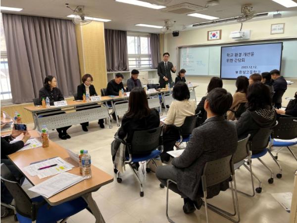 [한국뉴스타임=편집국] 경기도의회 교육행정위원회 문승호 의원(더불어민주당, 성남1)은 지난 12일 성남 효성고등학교에서 열악한 교육환경 개선을 위한 의견수렴 및 대책 마련을 위한 정담회를 가졌다.
