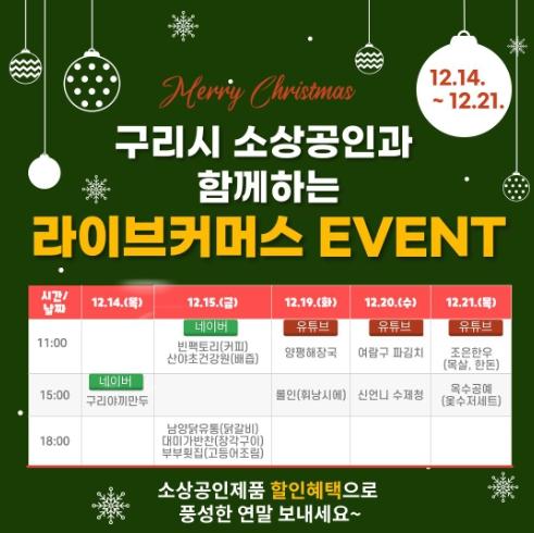 [한국뉴스타임=편집국] 구리시는 구리시 관내 소상공인의 판로 확대 지원과 온라인 시장 진출을 위한 ‘구리시 소상공인 라이브커머스’를 12월 14일부터 21일까지 5일간 9차례 방송한다고 밝혔다.