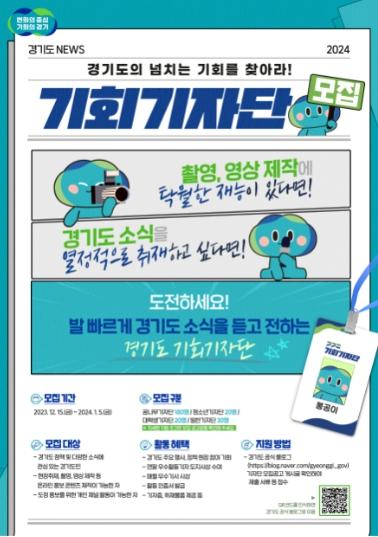 선발된 기자단은 내년 2월 발대식을 하고 연말까지 ‘2024 경기도 기회기자단’으로 활동한다. 경기도 주요 행사와 정책 현장, 문화행사 등을 취재해 기사로 작성하고, 현장탐방 및 팸투어, 기자단 역량 강화 교육 등에도 참여할 수 있다.