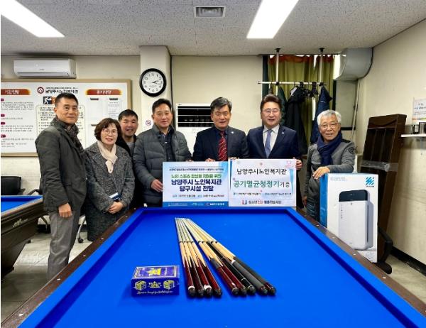 [한국뉴스타임=편집국] 남양주시는 지난 13일 관내 사회적기업인 (사)청소년건강활동진흥재단과 남양주시 당구협회가 협업으로 남양주시 노인복지관(진건읍 송능리)에 약 400만 원 상당의 당구대와 200만 원 상당의 공기청정기를 기부했다고 14일 밝혔다.