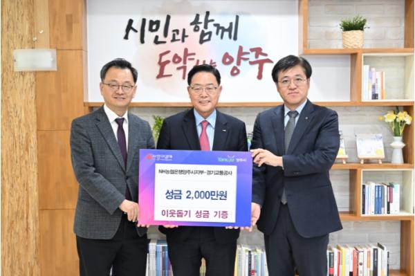 [한국뉴스타임=편집국] 경기교통공사와 NH농협양주시지부가 양주시에 연말 이웃사랑 성금 2천만 원을 기탁했다.