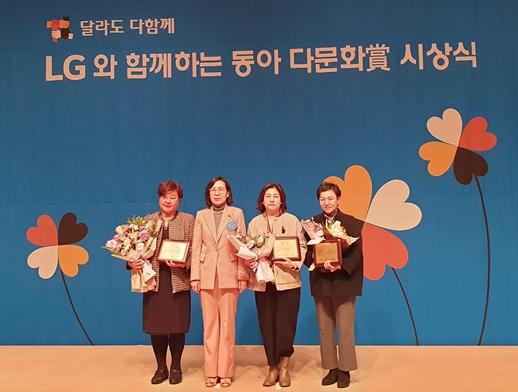 [한국뉴스타임=편집국] 구리시 가족센터는 지난 13일 동아일보와 채널A가 주최하고 LG와 여성가족부가 후원하는 ‘LG와 함께하는 동아 다문화상’ 시상식에서 ‘다문화 공헌 우수단체상’을 수상했다.