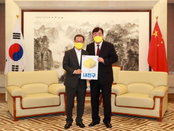 이날 조 시장은 직접 디자인한 항균 마스크를 싱 하이밍 대사에게 전달하면서 마스크를 휴대전화처럼 항상 몸에 지니고 다니자는 취지의『MASK is my FRIEND(마스크는 내 친구)』캠페인 동참을 부탁했으며, 빠른 시일 내에 남양주시에 방문할 것을 제안하였다.