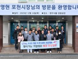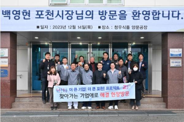 이날 기업 규제·애로청취 현장방문에는 백영현 포천시장, 조대룡 영중면장, 청우식품 박윤구 회장, 청우식품 김봉기 생산본부장, 관계 공무원 등이 함께해 기업 소개를 듣고 애로사항을 청취하는 간담회를 개최했다.