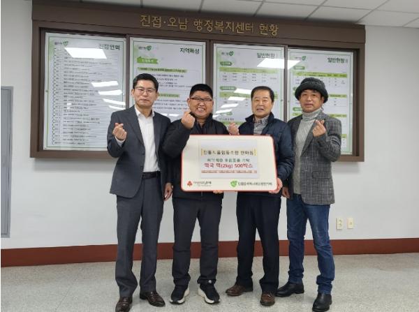 [한국뉴스타임=편집국] 남양주시 진접오남행정복지센터는 15일 전통식품협동조합 한마음 저소득층 지원을 위해 750만원 상당의 떡국떡(2kg) 500박스를 사회복지공동모금회를 통해 진접읍 지역사회보장협의체(위원장 김용욱)에 기탁했다고 밝혔다.