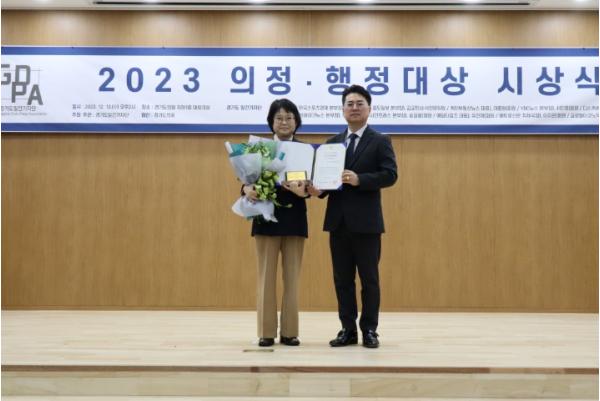 [한국뉴스타임=편집국] 경기도의회 교육행정위원회 김미리 위원장(더불어민주당, 남양주2)이 13일(수) 경기도일간기자단이 주최한 ‘2023년 의정·행정대상’ 시상식에서 경기도의회 베스트 상임위원장 상을 수상했다.