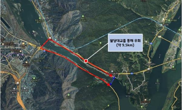 인근 통행 차량이 팔당댐 관리교(댐 상부)를 이용하지 않고 한강을 건너려면 9.5km 우회로 팔당대교를 이용해야 한다.