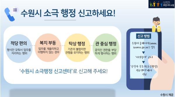 [KNT한국뉴스타임] 수원시가 시민들의 권익을 향상시키는 적극행정 문화를 정착시키기 위해 ‘소극행정신고센터’를 설치해 운영하기 시작했다.