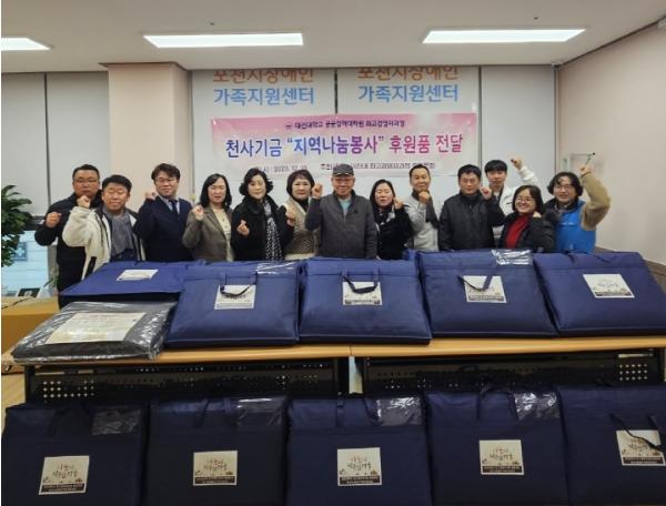 [한국뉴스타임=편집국] 포천시는 포천시장애인가족지원센터가 지난 15일 센터 프로그램실에서 대진대학교 최고경영자과정 총동문회, 유관기관과 함께 ‘따뜻한 겨울나기’ 물품 전달식을 진행했다고 밝혔다.