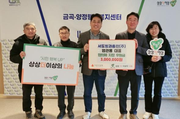 [한국뉴스타임=편집국] 남양주시 금곡양정행정복지센터는 18일 서울빙과총판 주식회사 엄관용 대표가 금곡동 지역사회보장협의체에 금곡동 어르신들을 위한 일에 사용해 달라며 300만원을 지정 기탁했다고 밝혔다.