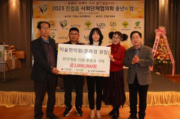 진접읍 사회단체‘송년의 밤’행사에서 진행된 이번 후원금 전달식에는 주광덕 시장, 윤경배 진접오남행정복지센터장, 문하경 이숲한의원 원장, 김용욱 지역사회보장협의체위원장 등이 참석했다.