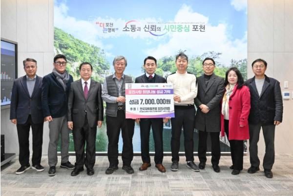 [한국뉴스타임=편집국] 포천시는 지난 18일 한국자유총연맹 포천지회가 경기사회복지공동모금회를 통해 포천시의 어려운 이웃 지원을 위한 이웃돕기 성금 700만 원을 기탁했다고 밝혔다.