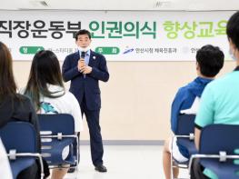 전날 안산 와~스타디움에서 진행된 교육은 안산시청 직장운동부(유도·펜싱·태권도·탁구) 지도자 및 선수, 안산 그리너스 FC 소속 유소년 선수 및 지도자 등 60여명이 참석했으며, 윤화섭 안산시장과 윤종성 대한체육회 윤리위원이 강사로 참여해 선수들에게 스포츠 인권의 중요성을 주제로 교육을 진행했다.