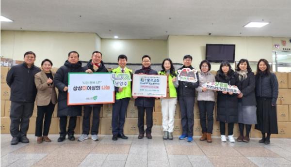 [한국뉴스타임=편집국] 남양주시 호평평내행정복지센터는 지난 19일 주평강교회에서 성탄절 맞이 선물꾸러미 100상자를 호평동 지역사회보장협의체와 평내동 지역사회보장협의체에 전달했다고 밝혔다.