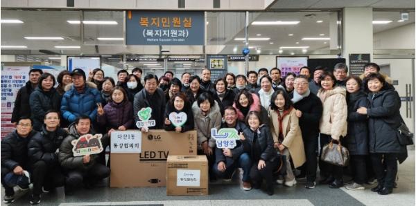 [한국뉴스타임=편집국] 남양주시 다산1동 통장협의회는 지난 19일 다산행정복지센터에 다산1동 관내 취약계층을 위한 후원물품(TV, 전자레인지 등 가전제품)을 전달했다.