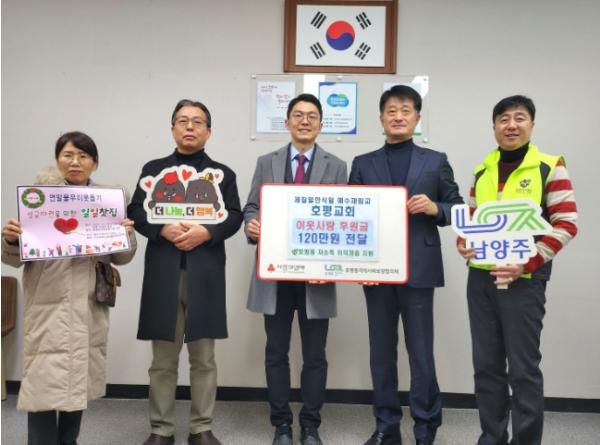 [한국뉴스타임=편집국] 남양주시 호평평내행정복지센터는 지난 19일 제칠일안식일 예수재림교 호평교회에서 지역주민을 위한 후원금 120만 원을 호평동 지역사회보장협의체에 전달했다고 밝혔다.