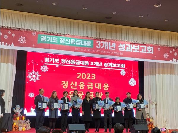 경기도 정신응급대응사업 유공자 표창, 정신응급 협력 우수사례 발표, 경기도 정신응급사업 3개년 성과보고도 진행됐다. 경기도 정신응급대응사업 유공자 12명과 3개의 유공기관에 도지사 표창을 수여했고 정신응급 협력 우수사례는 화성 동탄경찰서와 안양소방서 119 구급대, 수원시행복정신건강복지센터에서 발표했다.