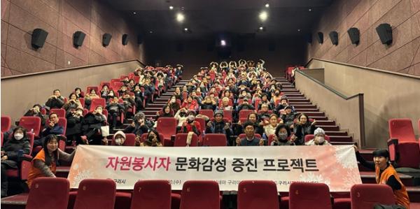 [한국뉴스타임=편집국] 사단법인 구리시자원봉사센터는 지난 20일 롯데시네마 구리아울렛점에서 자원봉사자 150여 명을 초대해 영화를 관람하는 행사를 추진했다.