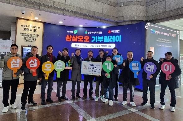 ‘삼삼오오 기부릴레이’는 남양주시청 각 부서 또는 관내 사회단체를 대상으로 진행되는‘매월 3일과 13일에 5천 원을 기부해 행복한 오늘을 만들자’라는 기부 캠페인으로, 지난 8월부터 남양주시청 기부자 명예의 전당에서 진행되고 있다.