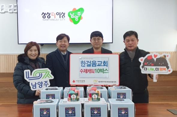 [한국뉴스타임=편집국] 남양주시 별내면에 소재한 한걸음교회는 지난 20일 크리스마스를 맞이해 교인들이 직접 만든 마카롱 케이크 10박스를 별내면사무소에 기탁했다.