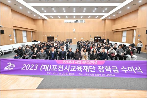 [한국뉴스타임=편집국] 포천시는 (재)포천시교육재단이 지난 21일 시청 신청사 대회의실에서 ‘2023 주거복지 지원 대학장학생 장학금 수여식’을 개최했다고 밝혔다.