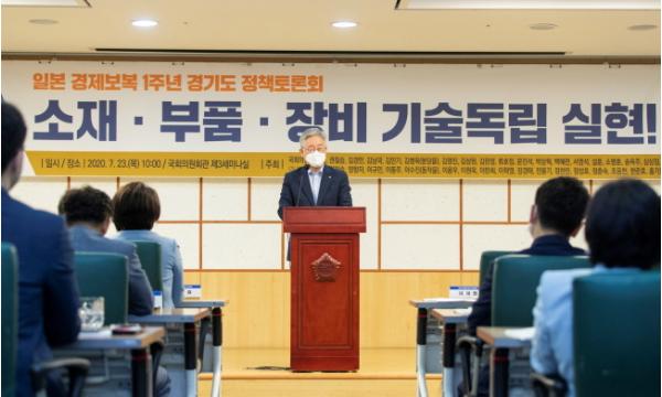 [KNT한국뉴스타임] 이재명 경기도지사가 23일 국회의원회관에서 열린 ‘소부장산업 육성방안 토론회’에서 일본의 경제침략과 코로나19로 인한 경제위기를 기술강국으로 성장하는 전화위복(轉禍爲福)의 기회로 삼겠다는 뜻을 밝혔다.