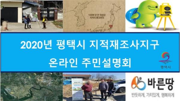 평택시(시장 정장선)는 코로나19 지역사회 확산방지 및 생활 속 거리두기 실천을 위하여 지적재조사사업 주민설명회를 온라인으로 실시한다.