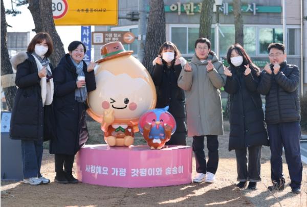 캐릭터 받침대로는 하트 모양에 ‘사랑해요 가평, 갓평이와 송송이’ 문구가 새겨지고 캐릭터 설명서도 설치되는 등 연말연시 행복을 전하며 이해를 돕고 있다.
