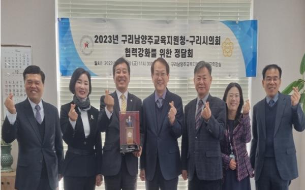 [한국뉴스타임=편집국] 경기도구리남양주교육지원청은 12월 22일 구리시의회 권봉수 의장, 양경애 부의장, 신동화 의회운영위원장과 구리시의회의 조례 제·개정 노력에 감사를 표하고 앞으로의 협력을 강화하기 위하여 정담회를 개최했다.