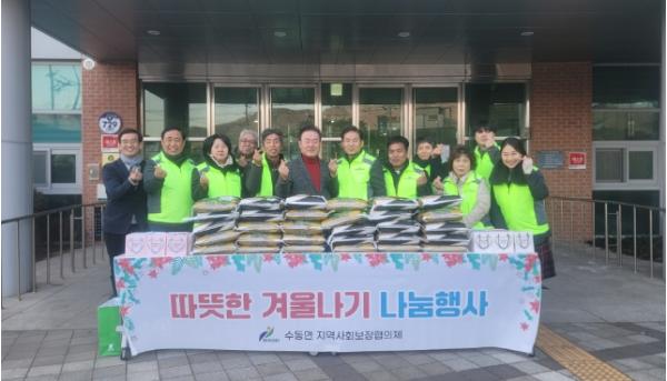 우해덕 수동면장은“추운 겨울에 돌봄 사각지대의 건강과 안전을 위해 아름다운 나눔을 실천해주신 수동면 지역사회보장협의체의 선행에 감사드린다.”라며 “앞으로도 마을 복지 발전과 나눔문화 확산에 힘쓰겠다.”라고 말했다.