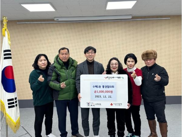 [한국뉴스타임=편집국] 구리시 수택1동 통장협의회는 지난 22일 수택1동 지역사회보장협의체에 어려운 이웃을 돕기 위한 사랑의 후원금 100만원을 기탁했다.