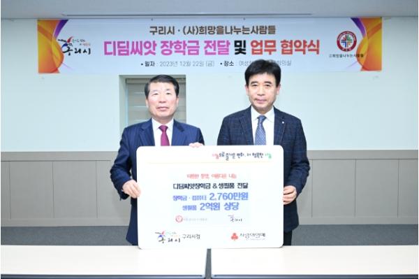 구리시는 이번 협약을 통해 2년에 걸쳐 디딤씨앗 장학금 2,400만원, 360만원 상당의 컴퓨터, 2억 원 상당의 생필품을 후원받게 된다.